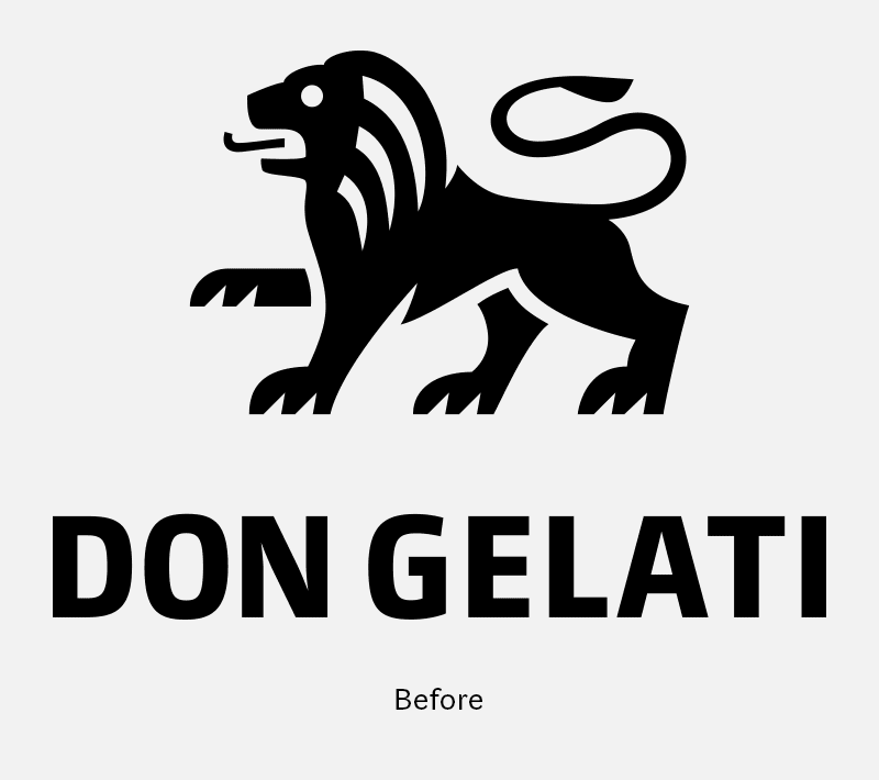 I gave the lion a new tongue that looks more like it’s licking ice cream. Furthermore, I smoothed the curves of the strands, back and tail. The word mark has become a touch bolder overall. I widened the letters D and G a bit, whereas N, E and L became a bit narrower. This gave room for a more harmonious spacing.